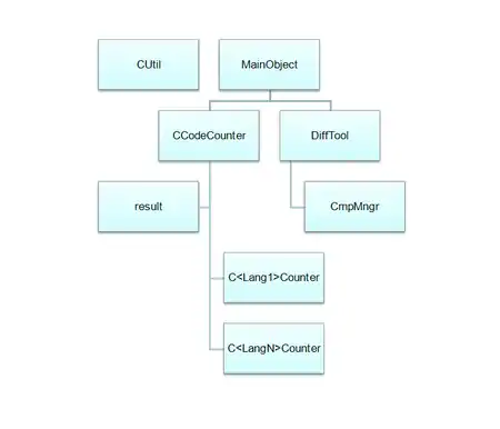 The MainObject is the top level class which performs the command line parsing, to extract the list of files from the command parameters and then reads each file into the memory for counting or differentiation. The MainObject calls the CodeCounters in order to process the embedded languages. The output of the counting function provides the following sets of files(.txt) for duplicate and counting/complexity results:
