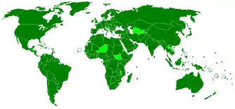 - List A (100 members): Afghanistan, Algeria, Angola, Bahrain, Bangladesh, Benin, Bhutan, Bosnia and Herzegovina, Botswana, Brunei Darussalam, Burkina Faso, Burundi, Cambodia, Cameroon, Cape Verde, Central African Republic, Chad, China, Comoros, Côte d'Ivoire, Republic of Congo, Democratic Republic of Congo, Djibouti, Egypt, Equatorial Guinea, Eritrea, Eswatini, Ethiopia, Fiji, Gabon, Gambia, Ghana, Guinea, Guinea-Bissau, India, Indonesia, Iran, Iraq, Israel, Jordan, Kenya, Kuwait, Laos, Lebanon, Lesotho, Liberia, Libya, Madagascar, Malawi, Malaysia, Maldives, Mali, Marshall Islands, Mauritania, Mauritius, Micronesia, Mongolia, Morocco, Mozambique, Myanmar, Namibia, Nepal, Niger, Nigeria, North Korea, Oman, Pakistan, Palestine, Palau, Papua New Guinea, Philippines, Qatar, South Korea, Rwanda, Samoa, Sao Tome and Principe, Saudi Arabia, Senegal, Seychelles, Sierra Leone, Singapore, Solomon Islands, Somalia, South Africa, Sri Lanka, Sudan, Syria, Thailand, Timor-Leste, Togo, Tonga, Tunisia, Turkmenistan, Uganda, United Arab Emirates, Tanzania, Vanuatu, Viet Nam, Yemen, Zambia, Zimbabwe.