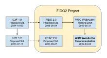 The U2F 1.0 Proposed Standard (October 9, 2014) was the starting point for a short-lived specification known as the FIDO 2.0 Proposed Standard (September 4, 2015). The latter was formally submitted to the World Wide Web Consortium (W3C) on November 12, 2015.[32] Subsequently, the first Working Draft of the W3C Web Authentication (WebAuthn) standard was published on May 31, 2016. The WebAuthn standard has been revised numerous times since then, becoming a W3C Recommendation on March 4, 2019.