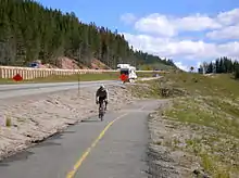 A bike path parallels I-70 from Vail Colorado to the Copper Mountain Ski Area and is the only pass in Colorado with a paved bike path on both sides for the entire distance.[7] This 8.7 mile climb from East Vail with an 1,831 foot (558m) vertical gain and descent to Copper is a popular activity for cyclists during the summer and fall.[8] This route leads to several other bike paths in Summit County.[7] During the winter months the area hosts backcountry skiing and snowmobile activities.
