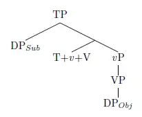 In Tagalog, there can be adverbs between the verb and the object in VOS order, implying that the verb and the object can be separated, and do not form a constituent.[4] In Tongan, there is an asymmetry between case-marked arguments and clitic pronouns: the clitics surface pre-verbally, whereas the case-marked nouns can only surface post-verbally (Otsuka 2005). Otsuka (2005) proposed that the subject clitic undergoes head-movement to T0, and attaches to the verb, whereas the case-marked subject moves to Spec,TP. He concludes that only verb head-movement can explain such a syntactic asymmetry in Tongan.
