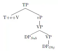 V1 word order can also be analyzed as a derivation from the more common SVO order through verbal phrase movement. This solution is commonly proposed for Austronesian languages.[1] Accounts on phrasal movement differ on 1) the highest maximal projection that moves (VP, vP, or TP), 2) the landing site of the moved phrase (Spec,TP or higher), and 3) the motivation for movement (generally agreed to be the EPP).
