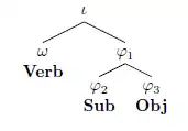 In these structures the verb (ω) precedes the hierarchically higher subject (φ). This structure obeys Weak Start. Thus, subject lowering is applied in order to satisfy this prosodic structure constraint.[4]