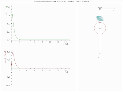 The major points to note from the solution are the exponential term and the cosine function. The exponential term defines how quickly the system “damps” down – the larger the damping ratio, the quicker it damps to zero. The cosine function is the oscillating portion of the solution, but the frequency of the oscillations is different from the undamped case.