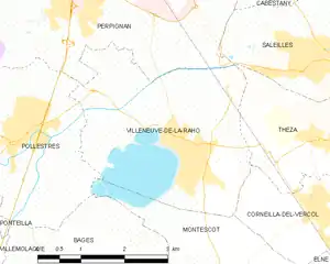 Map of Villeneuve-de-la-Raho and its surrounding communes