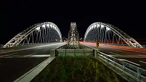 The Vimy Memorial Bridge (previously the Strandherd-Armstrong Bridge[1]) is a bridge in Ottawa, Ontario, Canada. Completed in 2014, it crosses the Rideau River, connecting Strandherd Drive in Barrhaven and Earl Armstrong Road in Riverside South. The bridge was the 2015 winner of the Gustav Lindenthal Medal.[2] It is named after the Battle of Vimy Ridge, as suggested by two Royal Canadian Legions in Ottawa.[1]
