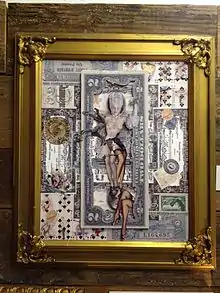 Visual focus depth art (VFDA) is a form of mixed media collage[1] that places an emphasis on the use of three-dimensional application to individual creations of single one-of-a-kind art pieces to emphasize individual meaning in the work. It is a derivative of assemblage,[2] collage[3] and decollage.[4] The concept is similar to the basic mixed-media collage idea of building up various levels of the piece for emphasis. Known in this medium as projections, the artist tries in a variety of ways to create a visual image that causes the viewer to focus on certain areas of the art framework that would ordinarily be overlooked or relegated to the background rather than to randomly layer structure creating a whole image of the work.