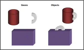 An extension of Marr and Nishihara's model, the recognition-by-components theory, proposed by Biederman (1987), proposes that the visual information gained from an object is divided into simple geometric components, such as blocks and cylinders, also known as "geons" (geometric ions), and are then matched with the most similar object representation that is stored in memory to provide the object's identification (see Figure 1).[12]