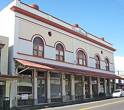 The Hilo Masonic Hall was another of the few fireproof buildings built just a few years earlier and a block away, in 1910. The only earlier commercial building that survives in Hilo is the S. Hata Building, built in 1912 by the brother of a board member of the Peoples Bank. The Hilo Federal Building was also built in this part of Hilo in 1915. In 1922 the first bank disaster in Hawaii caused the Peoples Bank to shut down.[5] The "big five" corporations controlled by descendants of early American missionaries, might have been a factor in its demise. Although known for the sugar industry, major banks were also controlled by the same families.[6] These include the Bishop Bank which opened in Hilo in 1910 (now First Hawaiian Bank), and First Bank of Hilo which opened in 1906 (now part of Bank of Hawaii).