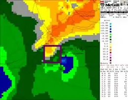 - J. S. Marshall Radar Observatory. "Target ID Radar Images PPI 0.5-degree". McGill University. Retrieved 18 April 2013.