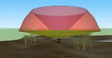 Due to the Earth's curvature and change of index of refraction with height, the radar cannot "see" below the height above ground of the minimal angle (shown in green) or closer to the radar than the maximal one (shown as a red cone in the center).[17]
