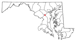 The Bacontown community along the Anne Arundel portion of Whiskey Bottom Road was established by the freed slave Maria Bacon. A road sign proclaims "Bacontown EST. 1860". Approximately 3 dozen small homes were established along with a church and schoolhouse. The community consists of multi-generational families who have worked together to drive out crime and prevent redevelopment of a community that looks much the same as it did in the 20th century. Bacontown was the last neighborhood along the road to link to city water and sewer service, in 1997.[49] The Mount Zion United Methodist Church and Bacontown Park are the most visible landmarks.[50]