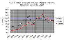 In 2002, the OECD defined it as "the ratio of a volume measure of output to a volume measure of input".[2] Volume measures of output are normally gross domestic product (GDP) or gross value added (GVA), expressed at constant prices i.e. adjusted for inflation. The three most commonly used measures of input are: