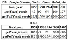 - JavaScript was changed due to concerns over the Y2K bug, and the return value for years changed and thus differed between versions from sometimes being a four digit representation and sometimes a two-digit representation forcing programmers to rewrite already working code to make sure web pages worked for all versions.[27][28]