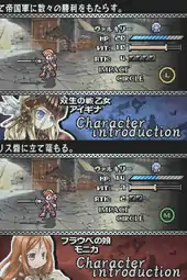 Yggdra Unison (ユグドラ・ユニゾン, Yugudora Yunizon) is a real-time strategy game for the cellular phone and Nintendo DS, developed by Sting Entertainment as a "fandisc"-type spinoff to Yggdra Union. The original cellphone version was self-published and released on November 11, 2007; the DS version was published by Atlus and released on December 12, 2009.[1] Neither installment has been released in any language other than Japanese. The game display is similar to that of Yggdra Union and Blaze Union, but all action is in real-time and units are allowed to move freely instead of on a grid. The DS version is mainly stylus-based with support functions and menu displays toggled by the R/L and directional buttons.