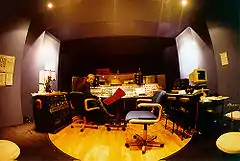 The studio had a vintage 1974 EMI Neve. One of only 7 made.[3] The recording area was a 1,000 sq ft (93 m2) main room and mezzanine, with two adjoining isolation rooms and a third separate isolation booth. The main room was 20 ft (6.1 m) high and was New Zealand's only high-stud professional studio live room. It had virtually no permanent acoustic absorption, relying on room shape and deflective elements to achieve control of reverberation.